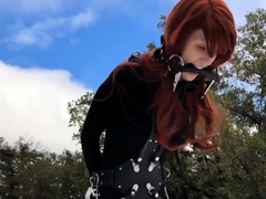 Sexy big tit MILF Red enjoys a hard cock outside at the